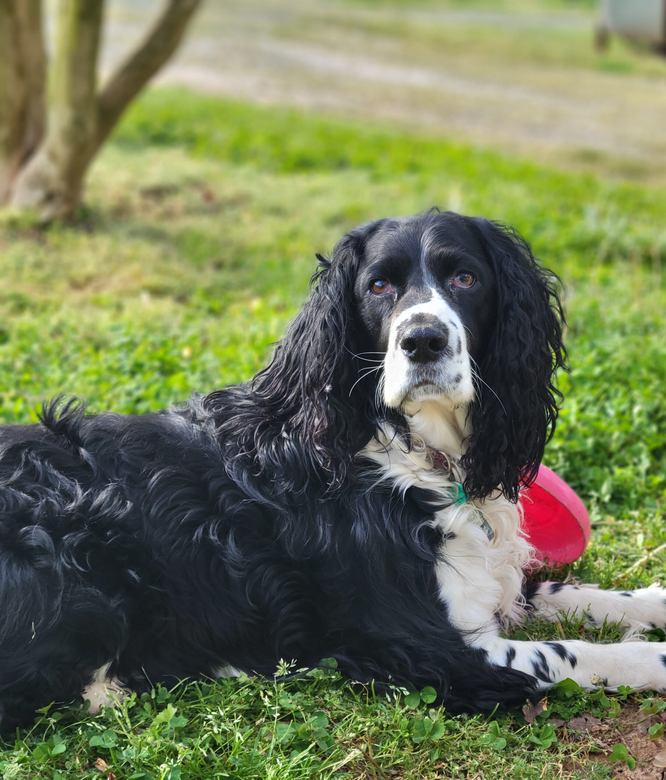 Minnie Sue Goodman aka “Minnie Moo Moo”. beloved English Springer Spaniel of John and Paula Goodman. crossed the rainbow bridge peacefully around 5:45pm on Friday, January 16th with her loving mother, Paula, and Aunt Adele by her side. She was born December 12, 2015 in Bland, VA. She was a rough and tough little chonk of a pup, often jumping and accidentally headbutting her family out of her rambunctiousness. Early on, she was known to destroy a lampshade or 10, but it was always an accident. Minnie was always happy and very ‘chill”…she didn’t have a mean bone in her fluffy body, always patient, kind and so sweet. She probably has more human friends than most other dogs, as her entire huge family loved her along with many friends and neighbors. Minnie was everybody’s baby.